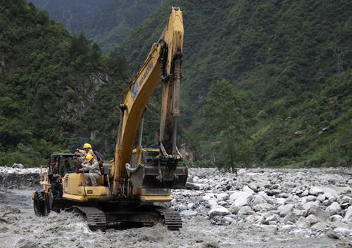 7月2日,正值運行值班人員和保安公司員工交接班,20多人需要送往仁宗海大壩、廠房和“引田入環(huán)”首部。為保證交接班人員安全、順利通行,現(xiàn)場值班領(lǐng)導(dǎo)段明多次到現(xiàn)場查勘、指導(dǎo)搶險工作。辦公室、水工水情部、安生部齊抓共管,在確保安全的前提下,組織員工和救災(zāi)物資通過泥石流河道,保證了交接班正常進(jìn)行和救災(zāi)物資的及時供應(yīng)。