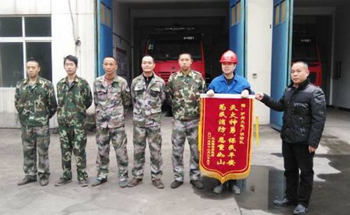 川南發(fā)電公司消防隊自2007年成立以來,在做好本公司內(nèi)消防工作的同時,積極協(xié)助地方做好消防工作,確保一方平安。9年來,共接外部社會火警數(shù)十次,均為江北鎮(zhèn)周邊民居村舍。贈旗儀式上,江北鎮(zhèn)領(lǐng)導(dǎo)的一句“只要一發(fā)生火警,川南發(fā)電公司的消防隊總是在第一時間趕到”道出了川南發(fā)電公司消防隊為保當?shù)卮迕穹老踩?gòu)建和諧村企所做的努力。(吳?。?BR>
